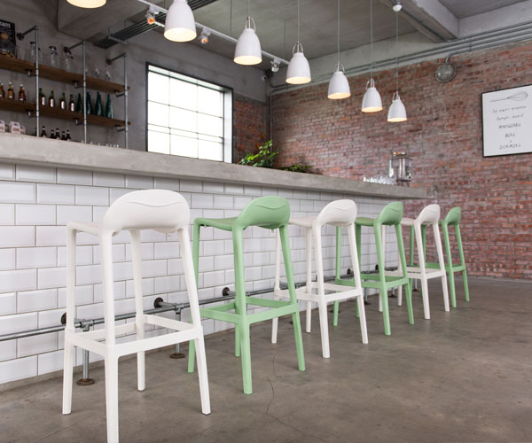 Patas, asiento y respaldo: de dos piezas en polipropileno de alta resistencia y duración para intemperie, resistente a los rayos ultravioleta (UV) y al ambiente salino.