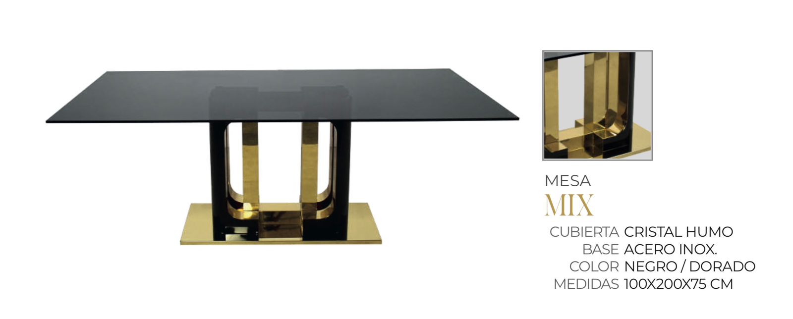 Mesa de Comedor Modelo MIX en Humo con Dorado y Negro