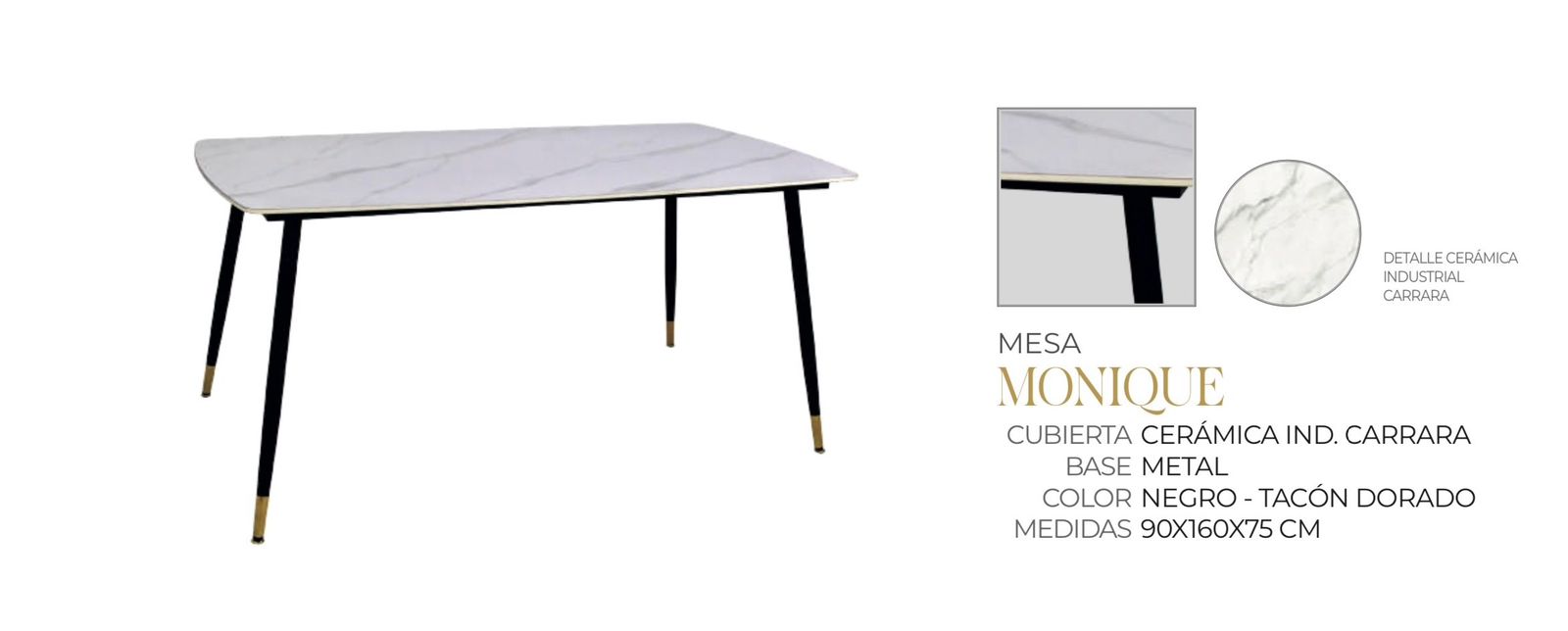 Mesa de Comedor MONIQUE en Mármol Carrara con Negro y Tacón Dorado
