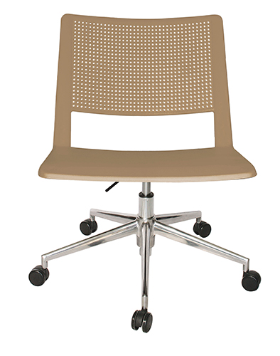 base: estrella de 5 puntas en aluminio fundido y pulido, rodajas tipo dual y/o regatones. elevación: por medio de pistón neumático con terminado en cromo que permite ajustar la altura del asiento. mecanismo: de aluminio fundido con palanca de accionamiento y bloqueo del pistón neumático. respaldo y asiento: en dos piezas en polipropileno de alta resistencia y duración. color: negro, azul marino, verde, naranja, arena, blanco, rojo o gris. peso máximo de resistencia: 160 kgs. NOTA: Las medidas de las alturas aumentan 240 mm con kits cajeros.