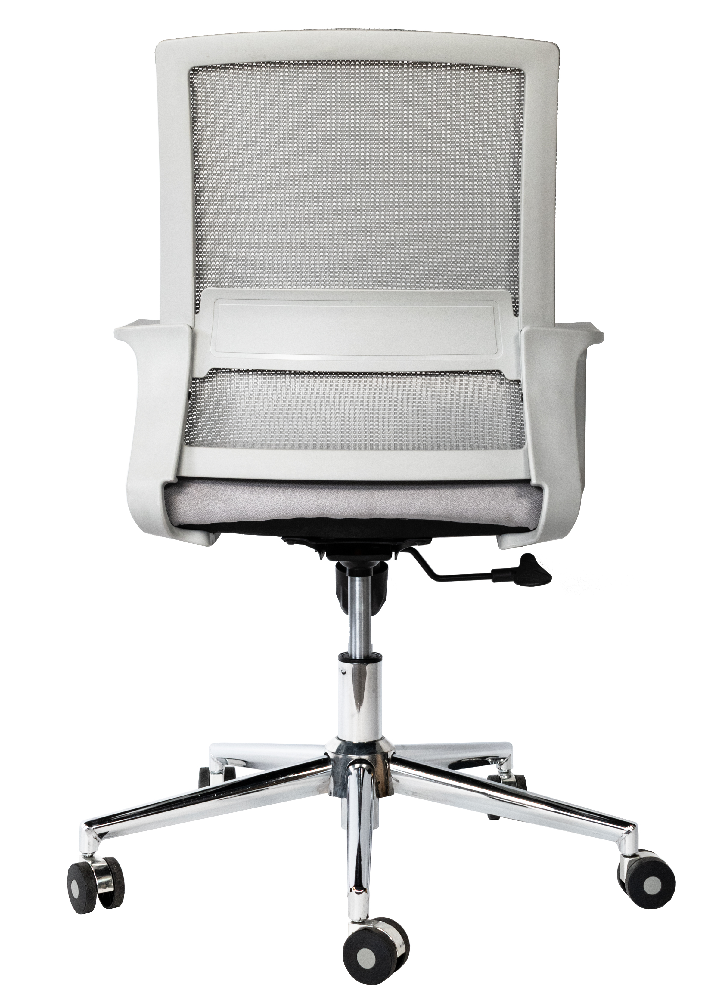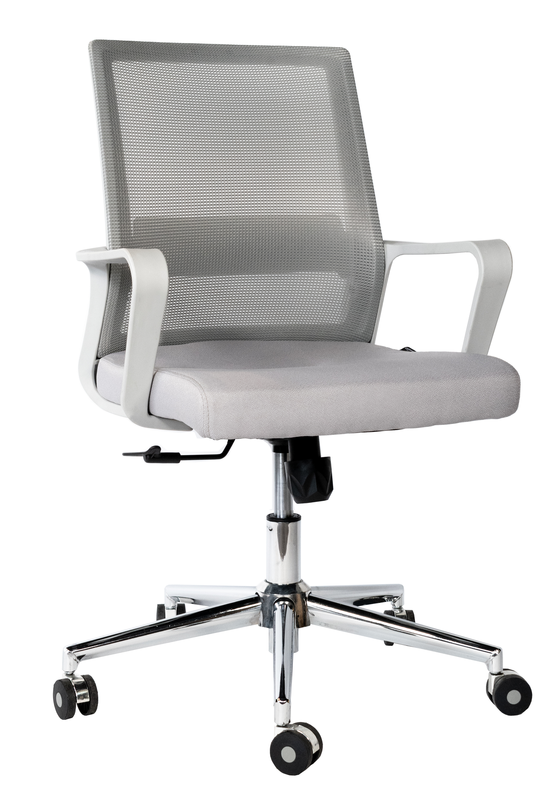 Silla Operativa de malla en color gris, con estrella de 5 puntas em poliamida, y rodajas tipo dual