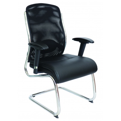 Sillón Directivo Modelo ALUFSEN OHV-408 Color Negro Con Base de Trineo Cromada