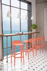 Patas, asiento y respaldo: de dos piezas en polipropileno de alta resistencia y duración para intemperie, resistente a los rayos ultravioleta (UV) y al ambiente salino.