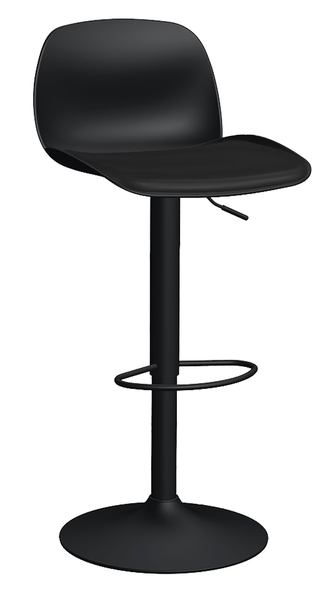Base: plato redondo en lámina de acero calibre 18; pedestal tubular de aero redondo de 3" calibre 18. elevación: por medio de pistón neumático extralargo clase 3 que permite ajustar la altura del asiento. mecanismo: placa de acero reforzado con palanca de bloqueo y con descansapies. respaldo y asiento: de una sola pieza, termoplástico polimerizado en polipropileno de alta densidad. color: blanco (W9), azul niebla (B9) con blanco (W9) o negro (K5). tapiz: soft revolving leather gris para el blanco o celeste con blanco y soft revolving leather negro para el negro. resistencia: peso sugerido 100 kgs.
