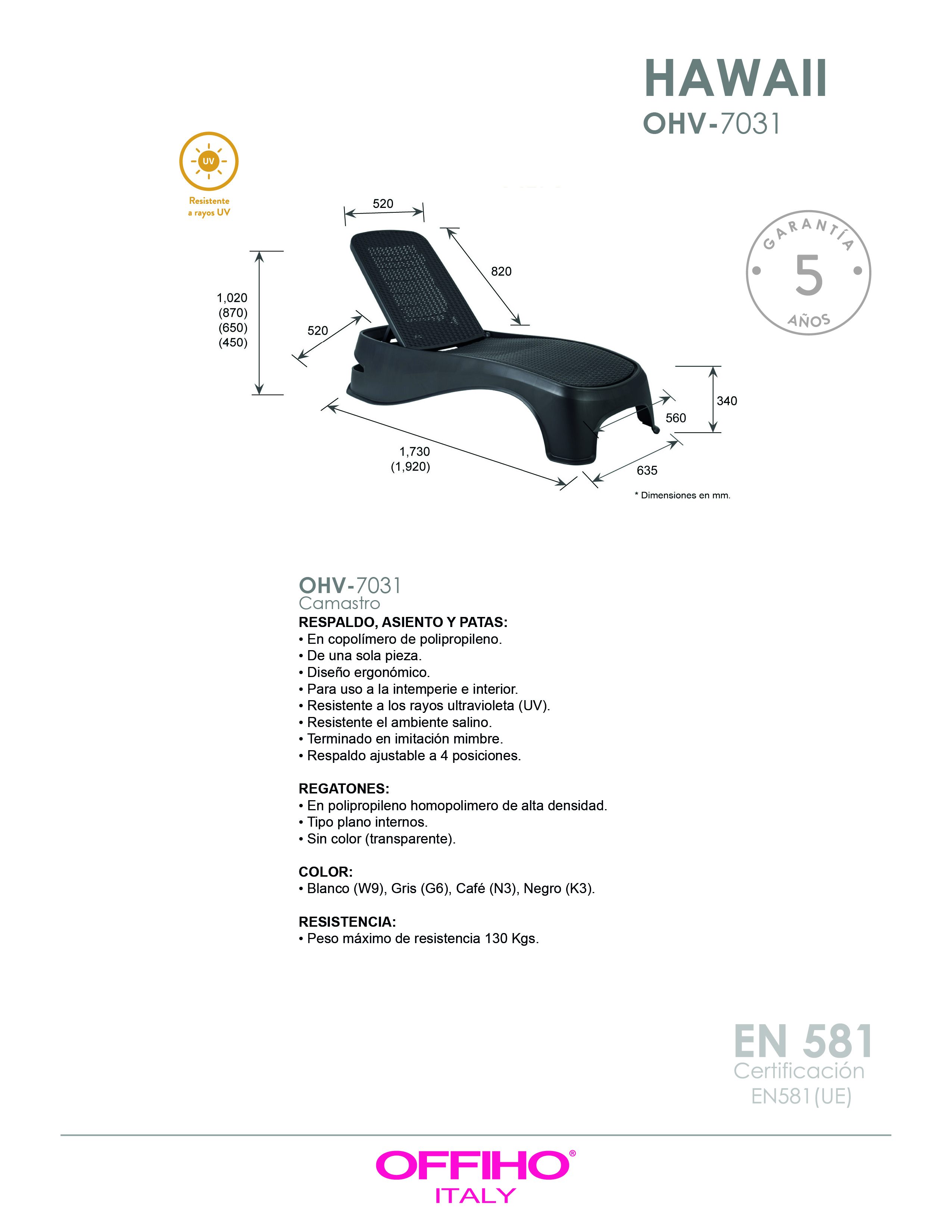 Camastro Exterior Hawaii OHV-7031 HAWAII OHV-7031