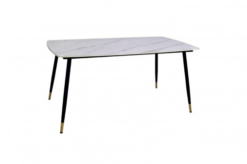 Mesa de Comedor MONIQUE en Mármol Carrara con Negro y Tacón Dorado