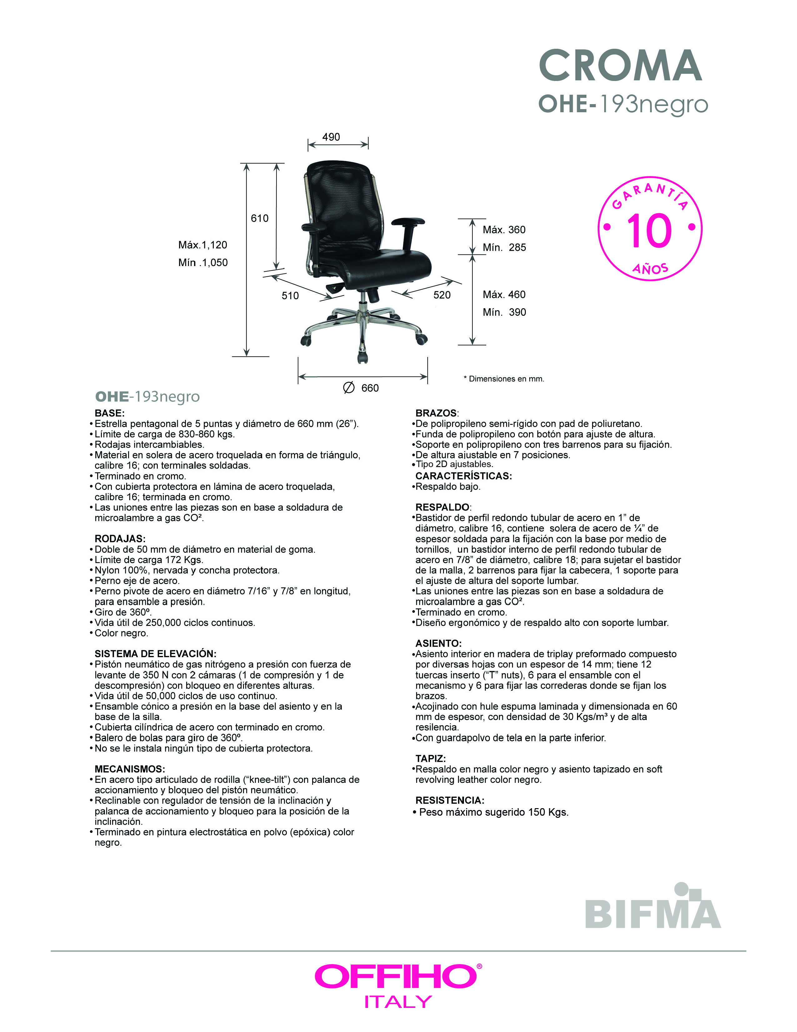 Sillón Ejecutivo Modelo CROMA OHE-193 Color Negro