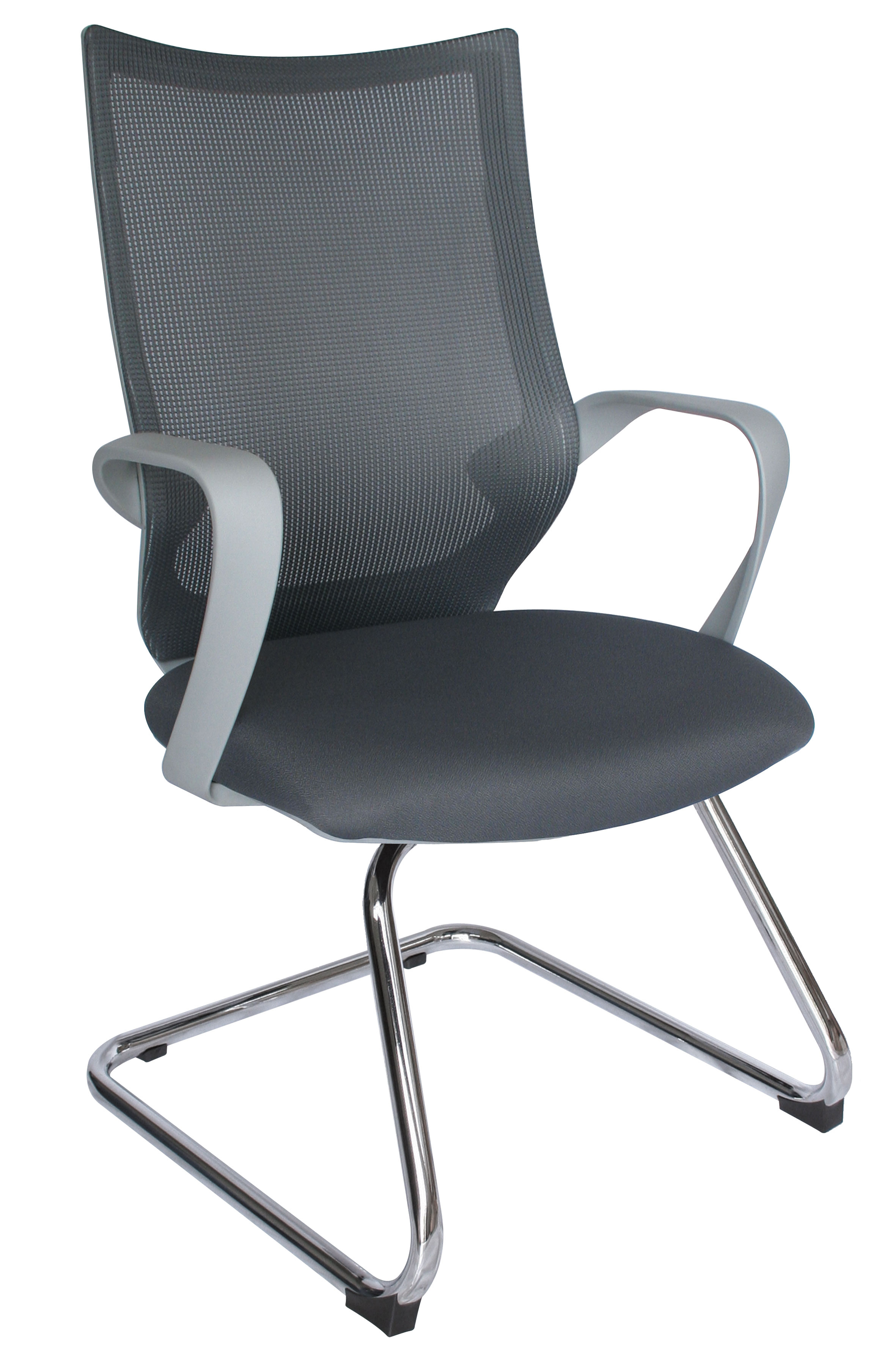 base: trineo de acero tubular redondo de 1" de diámetro, calibre 14; con terminado en cromo. brazos: de polipropileno semi-rígido. respaldo: bajo en malla de diseño ergonómico. asiento: hule espuma laminado flexible con densidad de 60 kgs/m3 y alta resiliencia. tapiz: respaldo en malla de color gris y asiento tapizado al color de su elección de toda nuestra colección de tapices. peso máximo de resistencia: 120 kgs.