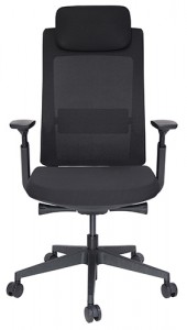 tapiz: respaldo de malla de color negro y asiento tapizado en tela de color negro.