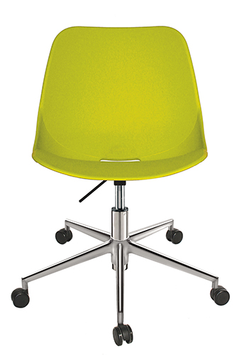 base: estrella de 5 puntas en aluminio fundido y pulido, rodajas tipo dual y/o regatones. elevación: por medio de pistón neumático con terminado en cromo que permite ajustar la altura del asiento. mecanismo: plato de acero reforzado con palanca de accionamiento y bloqueo del pistón neumático. asiento y respaldo: de una sola pieza en polipropileno de alta resistencia y duración. color: negro, azul, abocado, blanco, rojo o gris cálido. peso máximo de resistencia: 120 kgs. NOTA: Las medidas de las alturas aumentan 240 mm con kits cajeros.