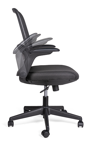 base: color negro en poliamida, estrella de 5 puntas en acero cromado, rodajas intercambiables. rodajas: color negro, nylon 100%, nervada y concha protectora con giro de 360°. sistema de elevación: pistón neumático de gas nitrógeno con cubierta cilíndrica de acero, bloqueo en diferentes alturas y ensamble cónico a presión en la base del asiento y en la base de la silla. mecanismo: reclinable con regulador de tensión de inclinación, placa de acero reforzado tipo articulado basculante, con palanca de accionamiento y bloqueo del pistón neumático. características: diseño ergonómico, respaldo medio y soporte lumbar fijo color gris. brazos: abatibles de polipropileno semi rígido con pad suave y tapizado en Soft revolving leather color negro. respaldo: color negro, bastidor de polipropileno de alta densidad y soportes en forma de L ensamblado al asiento por medio de tornillos. asiento: asiento interior en madera de triplay preformado, acojinado con espuma inyectada de 55kg/m3 y con tapa protectora de polipropileno de alta densidad. tapiz: respaldo de malla y asiento tapizado en funda de tela 100% poliéster color negro con pespunte. resistencia: peso máximo sugerido 130 kgs.