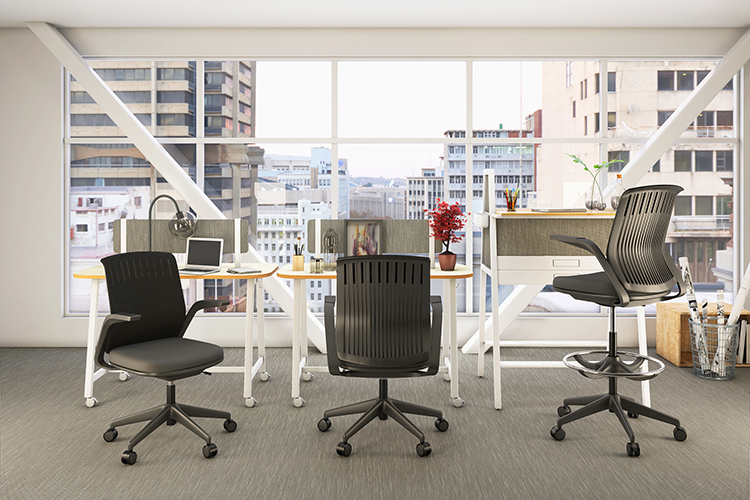base: estrella de 5 puntas en poliamida, rodajas tipo dual. elevación: por medio de pistón neumático que permite ajustar la altura del asiento. mecanismo: plato de acero reforzado tipo synchro reclinable con sistema de reclinación y palanca de bloqueo. brazos: de polipropileno semi-rígido. respaldo: bastidor en polipropileno de alta resistencia y duración. asiento: hule espuma laminado flexible con densidad de 30 kgs/m³ y alta resiliencia. tapiz: respaldo de malla de color negro y asiento en tela 100% POLIESTER COLOR NEGRO, FUNDA TAPIZADA Y PESPUNTADA, CON RETARDANTE DE FLAMA. peso máximo de resistencia: 120 kgs.