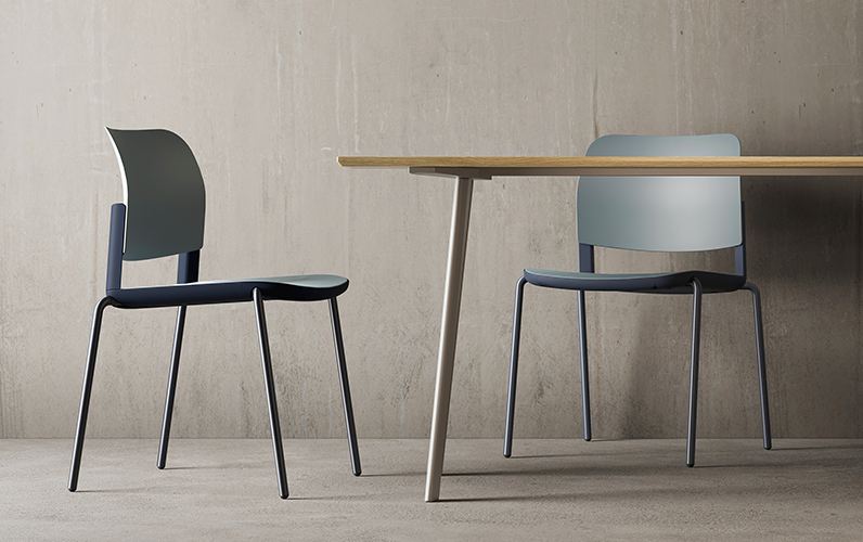 estructura: tubular de acero en 5/8” de diámetro, calibre 14 con postes de cold rolled de 1/2" para sujeción del respaldo. asiento y respaldo: en copolímero de polipropileno virgen de alta densidad, diseño ergonómico. color: blanco/gris claro, gris cálido/tabaco, torrente/torrente oscuro/, azul/océano y negro/negro. resistencia: peso sugerido 160 kgs. - Diseño de Jeremiah Ferrarese & Paolo Scagnellato, para OFFIHO®️