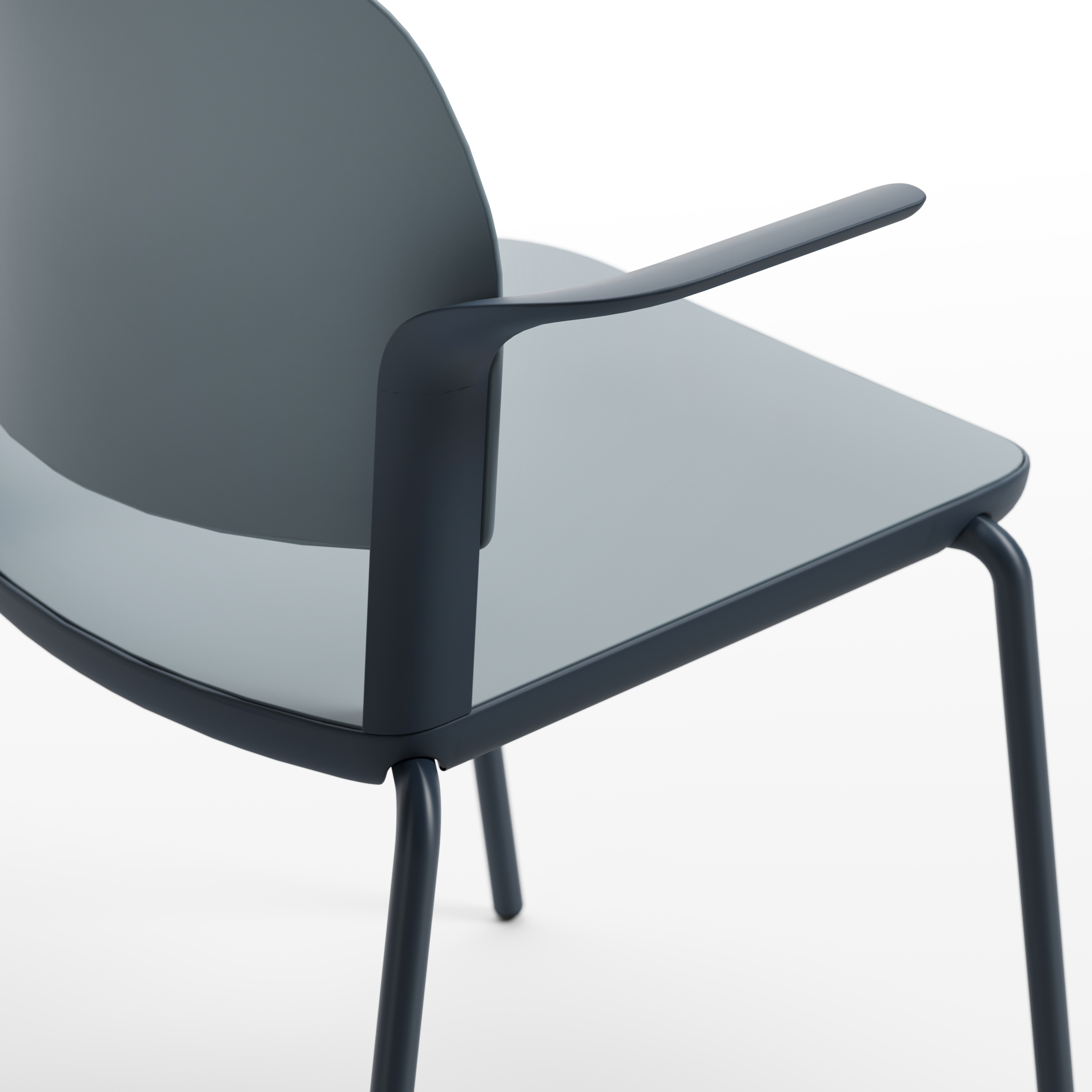 estructura: tubular de acero en 5/8” de diámetro, calibre 14 con postes de cold rolled de 1/2" para sujeción del respaldo. asiento y respaldo: en copolímero de polipropileno virgen de alta densidad, diseño ergonómico. brazos: polipropileno virgen de alta densidad diseñados para ensamblarse con el respaldo en un solo paso, formando una sujeción sólida de los elementos. color: blanco/gris claro, gris cálido/tabaco, torrente/torrente oscuro/, azul/océano y negro/negro. resistencia: peso sugerido 160 kgs. - Diseño de Jeremiah Ferrarese & Paolo Scagnellato, para OFFIHO®️